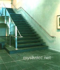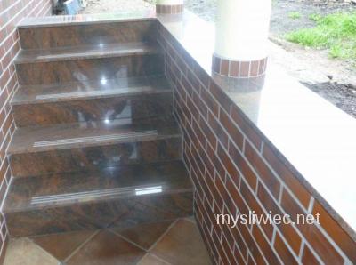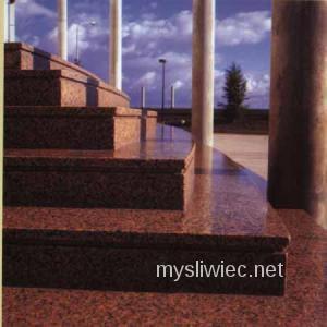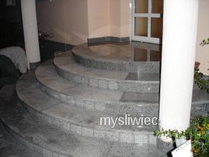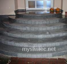Schody zewnętrzne wykonuje się z granitu. Ze względu na wyskoki stopień gładkości tego materiału, zaleca się zmatowić powierzchnię przez płomieniowanie całych stopni lub nacinanie, piaskowanie powierzchnie stopni schodowych przy krawędzi. Istnieje również możliwość wykonania elementów poręcz oraz balustrady z granitu lub metalu.